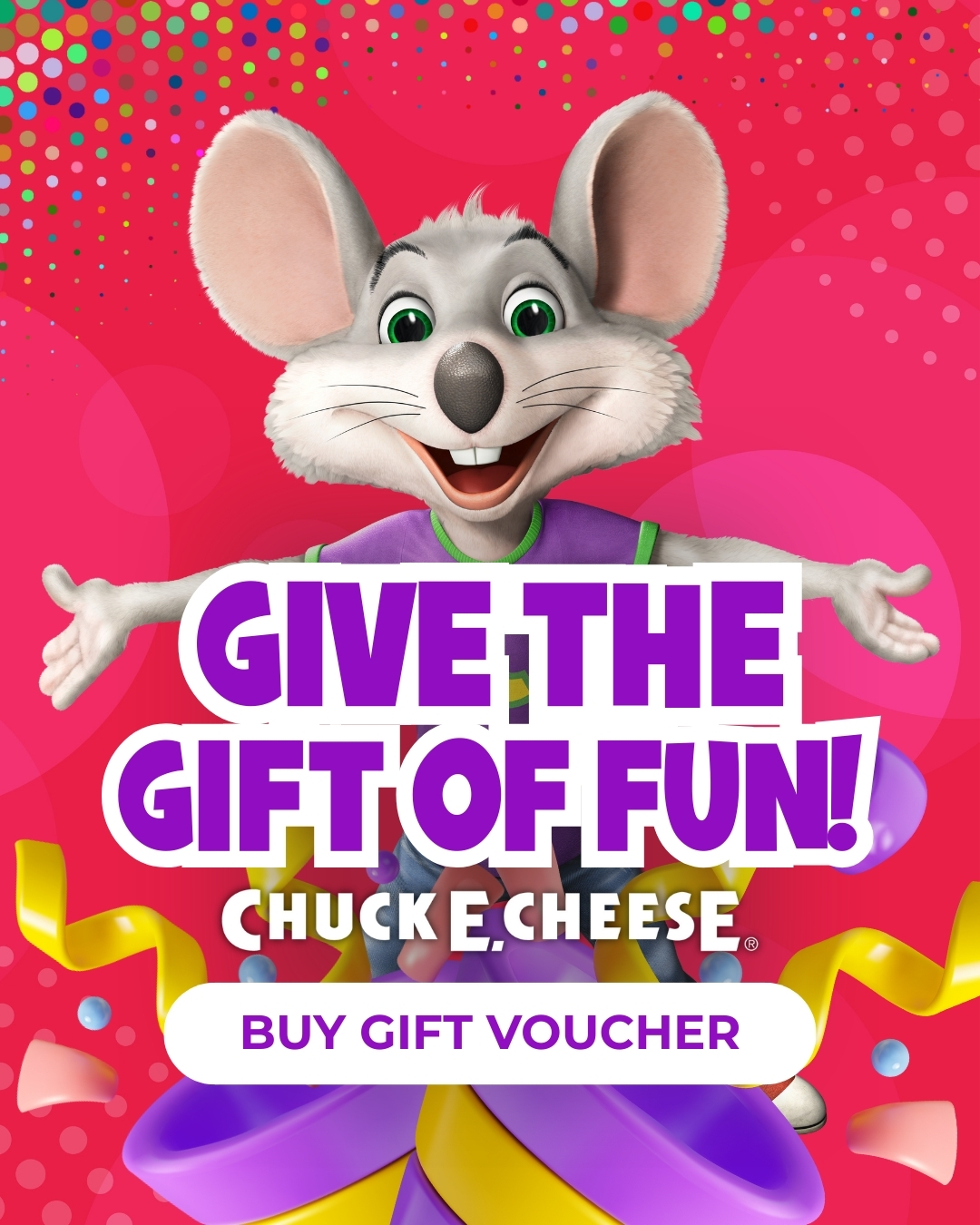Dive into your favourite arcade games, rack up those e-tickets and score epic prizes! Because at Chuck E. Cheese, having fun pays off!
