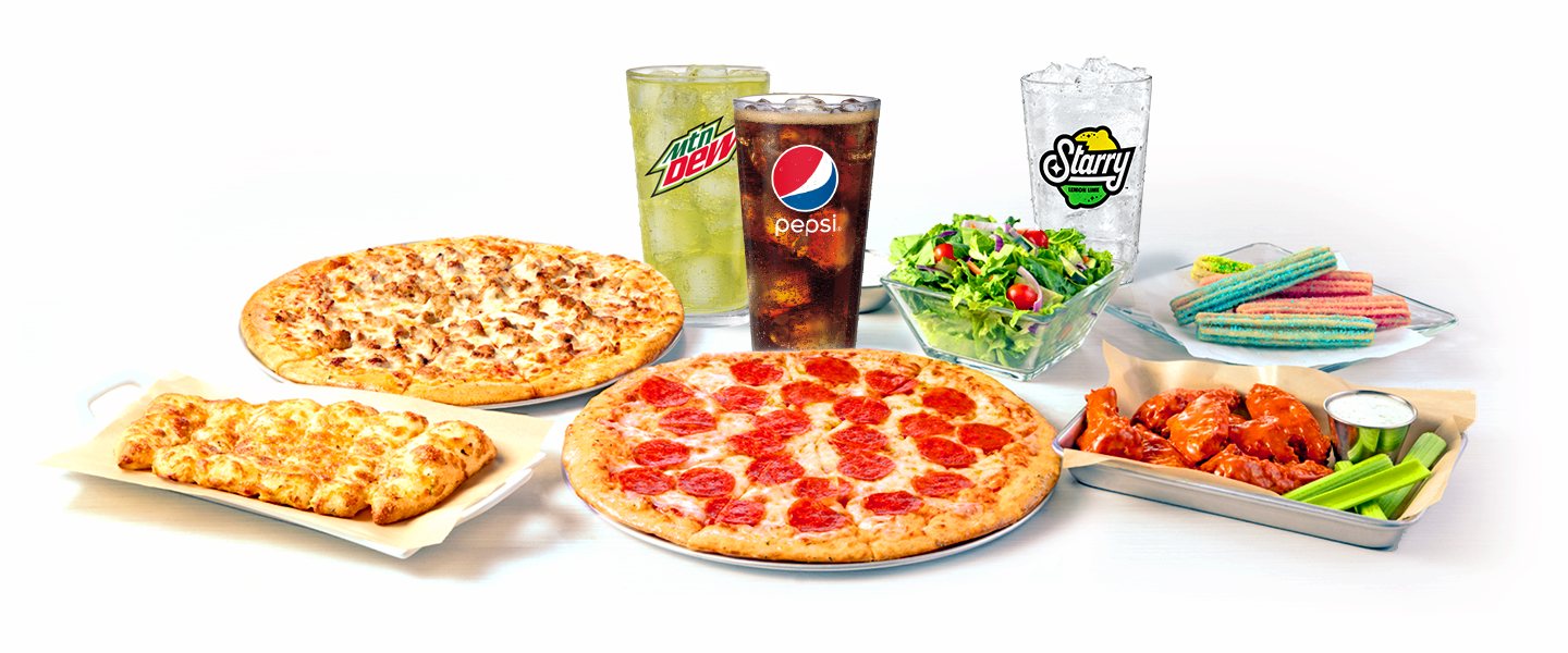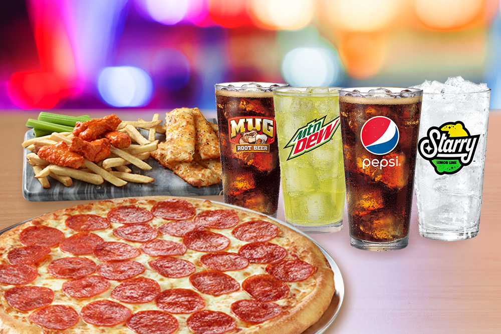 Choose from one of 6 Combo Deals. Each includes pizza and soft drinks.