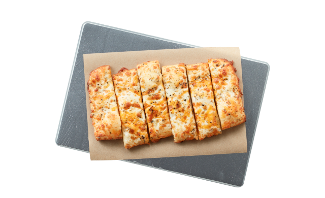 Our irresistible cheesy bread is packed with garlic spread and freshly shredded, freshly melted mozzarella and cheddar cheese. It’s served with pizza sauce and light ranch dressing for dipping.