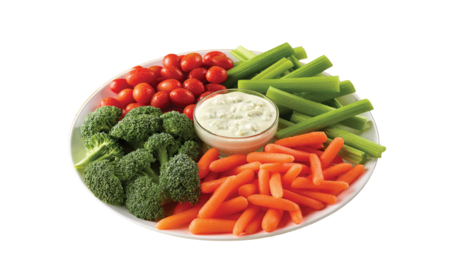 Dive into our Veggie Picky Platter – a crisp, colourful combo of baby carrots, cherry tomatoes, celery sticks, and broccoli florets, served with creamy hummus for the perfect dip-worthy snack!