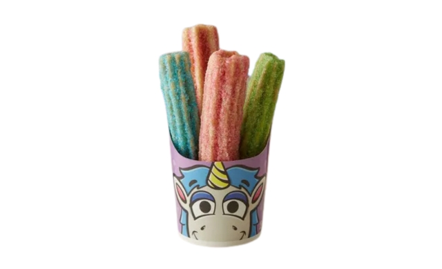 Our churros just became magical! They are baked to perfection, and dusted with cotton candy, sour apple, and blue raspberry sugar.