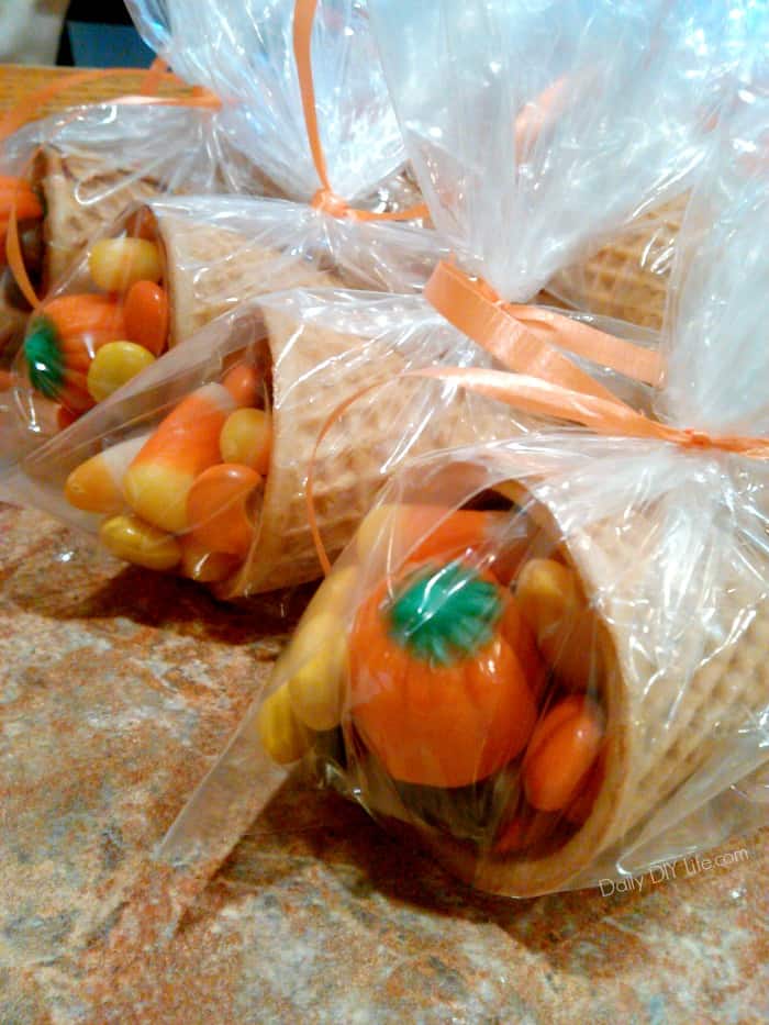 These waffle cone cornucopias make the cutest party favors for any event! Filled with holiday candy, all your guest will love snacking on these. Your kids will have so much fun stuffing the cones and building out their cornucopias!